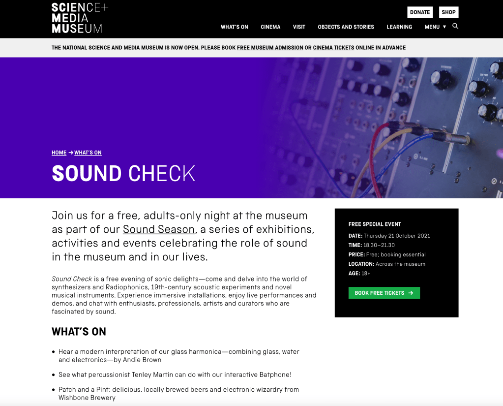 I will be presenting a live sound installation at Sound Check for the National Sound and Media Museum in Bradford on Thursday 21st October 2021. A free event, booking is essential. Click through for more info and tickets